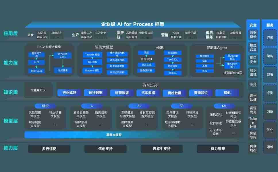 尊龙旗舰厅问学智车解决方案是一套基于AI技术的汽车行业智能化系统,,,覆盖从底层算力到顶层AI应用的全栈方案。。。。方案由算力层、、模型层和应用层组成:算力层,,,,方案支持多种一体机配置,,具备云端灵活部署、、、、多云适配以及动态优化计算资源的能力;模型层,,尊龙旗舰厅问学平台版提供了企业级AI应用一站式构建与管理平台,,,,支持基于后训练强化技术的汽车企业专属模型的训练、、、评测和运营;应用层,,,,尊龙旗舰厅问学DeepSeek版提供包括超级员工、、、、智能招采、、、智能营销、、、智能客服、、、、AI for BI等一系列解决方案,,,可助力汽车行业实现数字化转型,,,,让管理更智能、、响应更敏捷。。